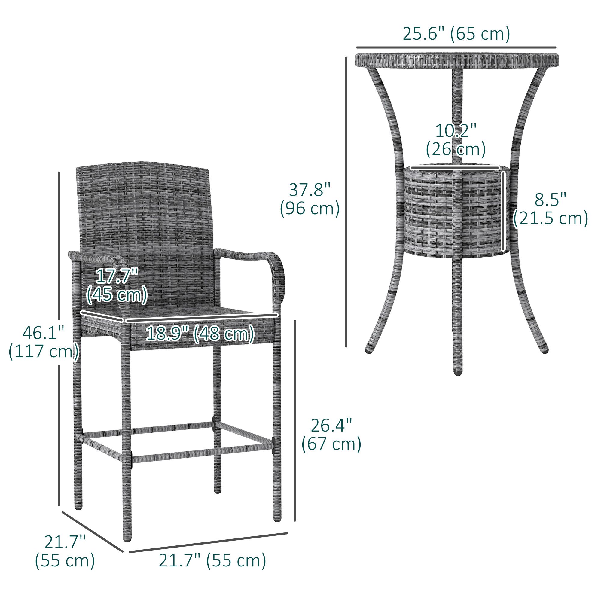 • Great Outdoor Addition: This high top outdoor table and chairs come with a simple yet classic design, this 3pc wicker bar set with 1 table and 2 stools is a great addition to any outdoor space.