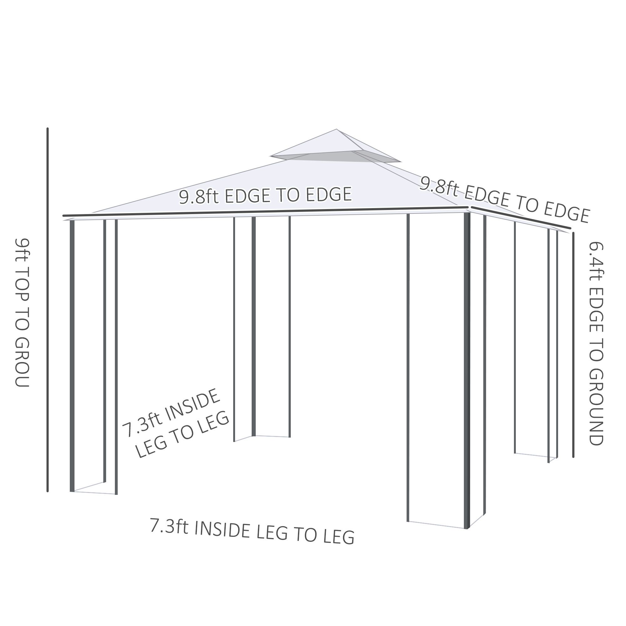 10' x 10' Steel Outdoor Patio Gazebo Canopy with Removable Mesh Curtains, Display Shelves, & Steel Frame, Beige