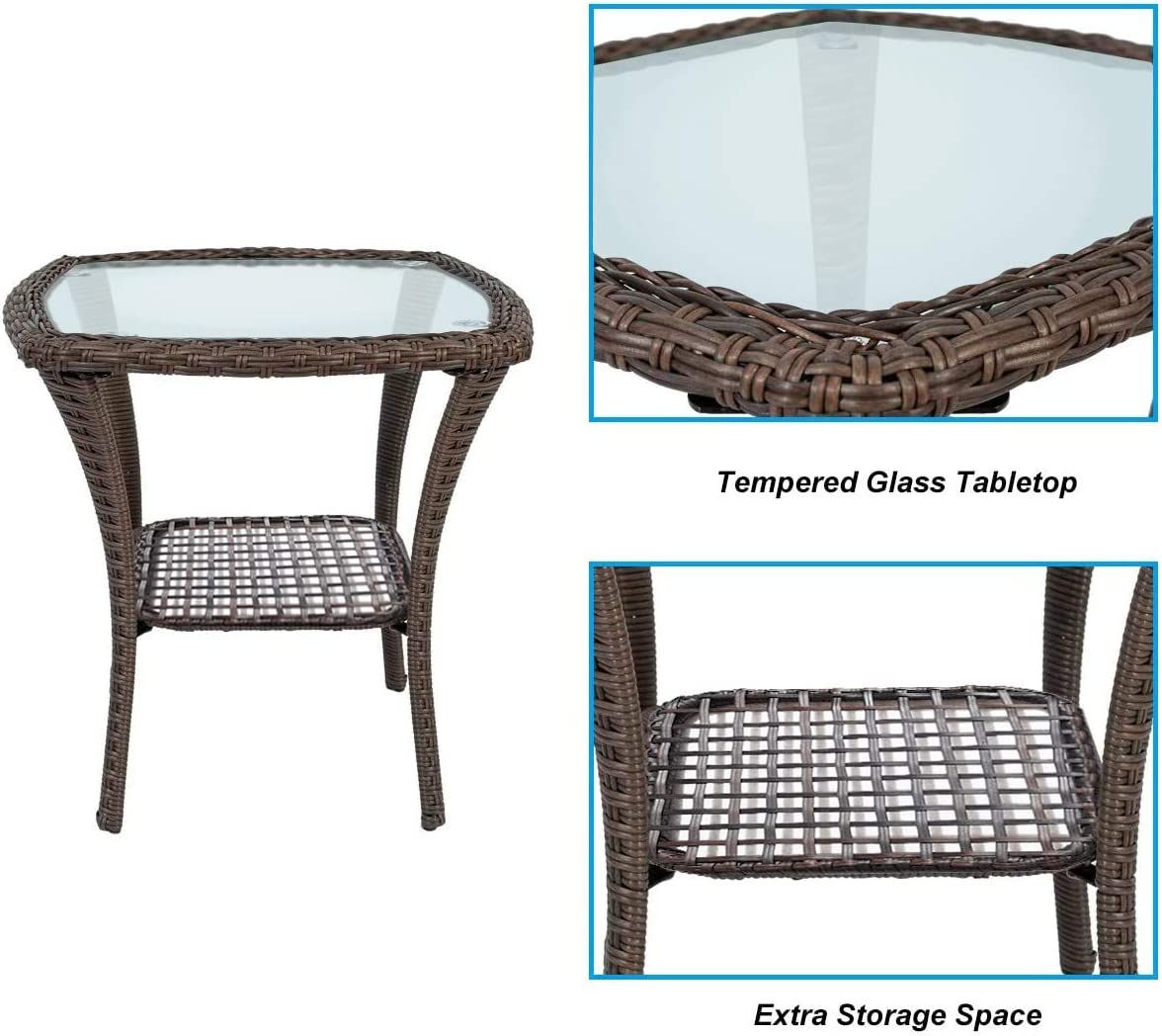 Square End Table Side Table Accent Table Coffee Table With Tempered Glass Top; For Living Room Porch Outdoor Beach Balcony and other Small Spaces