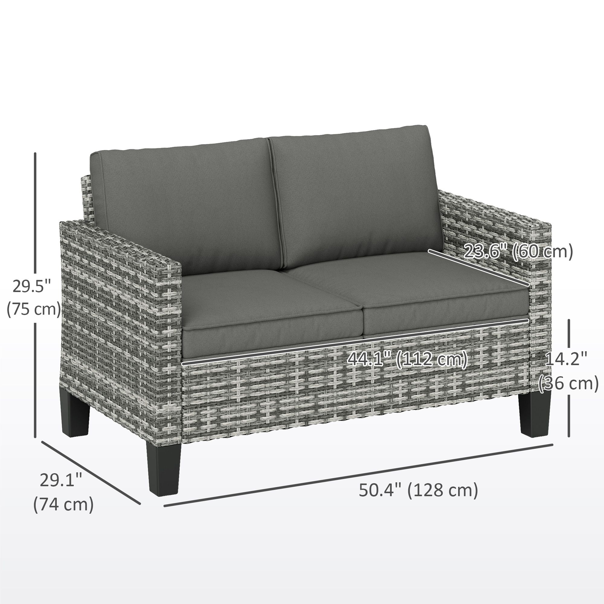 Home > 2 Seater Rattan Outdoor Sofa, Patio Couch Loveseat with Cushions and Armrests for Garden, Balcony, Dark Grey